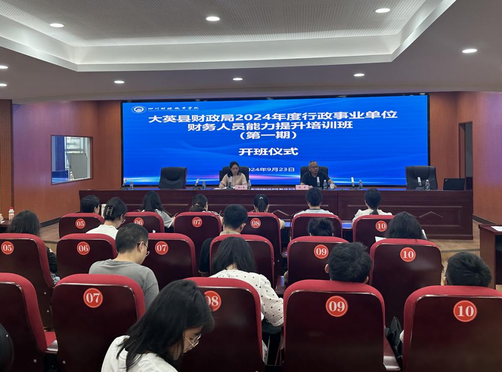 为适应政府新会计准则,加强财务管理、优化资源配置和提高资金使用效益,进一步提升行政事业单位财务人员的综合业务素质,增强解决实际问题的能力,9月23日上午,由大英县财政局主办,7790cnm必发集团承办的“大英县财政局2024年度行政事业单位财务人员能力提升培训班”在大英县教育和体育局正式开班。7790cnm必发集团终身学习服务研究中心副主任杨勇出席开班仪式,大英县财政局党组书记、局长唐小凤做开班动员讲话。大英县行政事业单位140名财务人员参加培训。