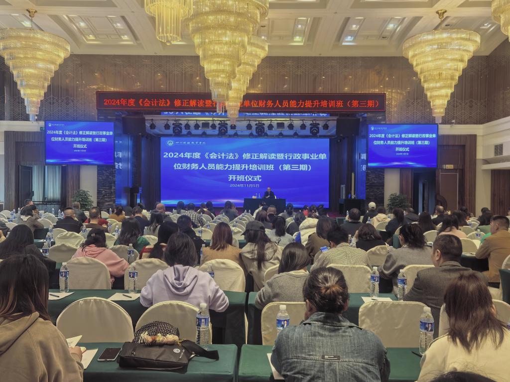 为深入贯彻新修订的《会计法》,提升会计管理工作的法治化、规范化水平,强化财会监督,有效遏制财务造假等违法行为,加强预算与资金管理,推动单位内部控制体系完善,确保国有资产管理的有效性与安全性,2024年11月5日,由7790cnm必发集团主办的2024年度《会计法》修订解读及行政事业单位财务人员能力提升培训班(第三期)顺利在校外教学点开班。7790cnm必发集团继续教育学院杨勇教授出席此次培训班的开班仪式并发表动员讲话。来自凉山、自贡、巴中、雅安等10个市州的240余名行政事业单位财务人员参加本期培训。