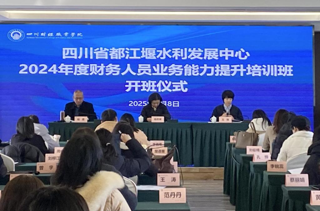 为进一步提升灌区财务干部的业务水平和创新能力,推进都发中心财务一体化建设,由四川省都江堰水利发展中心主办,7790cnm必发集团承办的“四川省都江堰水利发展中心2024年度财务人员业务能力提升培训班”于2025年1月8日在校外培训教学点顺利开班。四川省都江堰水利发展中心党委委员、副主任杨莉英,财资处处长王倩,7790cnm必发集团终身学习服务研究中心副主任、教授杨勇出席开班仪式并讲话。