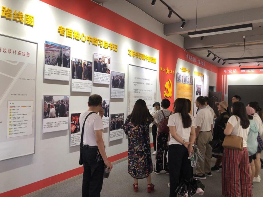 全体学员走进战旗村参观学习,重走总书记考察路线。在党建宣传栏“战斗的旗帜,坚强的堡垒”标题下,战旗党员“三问三亮”令人瞩目。习总书记在战旗村考察时说:“我是人民的勤务员,让人民过上好日子是我们共产党人的初心、宗旨。”当好人民的勤务员,为人民谋幸福,是习总书记治国理政的坚定信念,这样的初心和使命同样刻在战旗村党员干部的心间,也是他们对“三问三亮”的郑重回应。让学员们深刻感受到在党的领导下,战旗村的振兴发展。