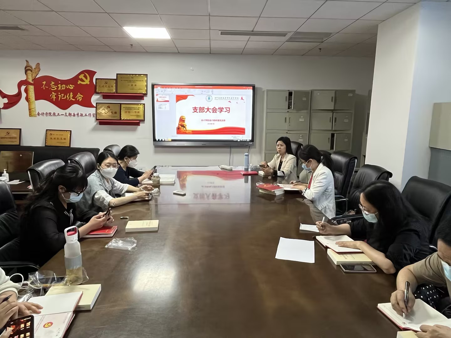 为持续加强党的理论知识学习,深入开展学习贯彻习近平新时代中国特色社会主义思想主题教育。2023年5月23日,会计教研室党支部在明德楼502开展了5月支部大会。会议由会计教研室党支部书记岳秀敏同志主持,会计教研室党支部全体党员教师参加。