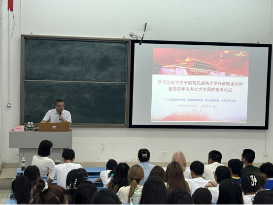 张教授从实现中华民族伟大复兴战略全局、世界正经历百年未有之大变局以及科学认识国际国内形势三个方面全面阐述了习近平关于实现民族伟大复兴战略全局和世界百年未有之大变局的重要论述,带领师生认清国内外形势、把握战略机遇,应对风险挑战、走好赶考之路。会计学院全体党员教师、党员学生、入党积极分子代表参加本次讲座。