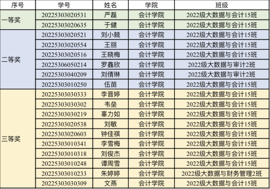 表 1竞赛组“财会通才”首次积分赛获奖名单