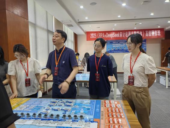 研修班特色环节“物理沙盘推演模拟与创新实验”中,学员通过函证核验、应收账款审计机器人的构建实践,梳理人工流程、分析痛点、设计自动化方案等,直观理解技术在审计全链条的作用,有效激发了学习与创新热情。此外,程平教授还分享了《RPA审计机器人》一流课程建设方法,解析教学改革路径,并指导课题申报与论文撰写。