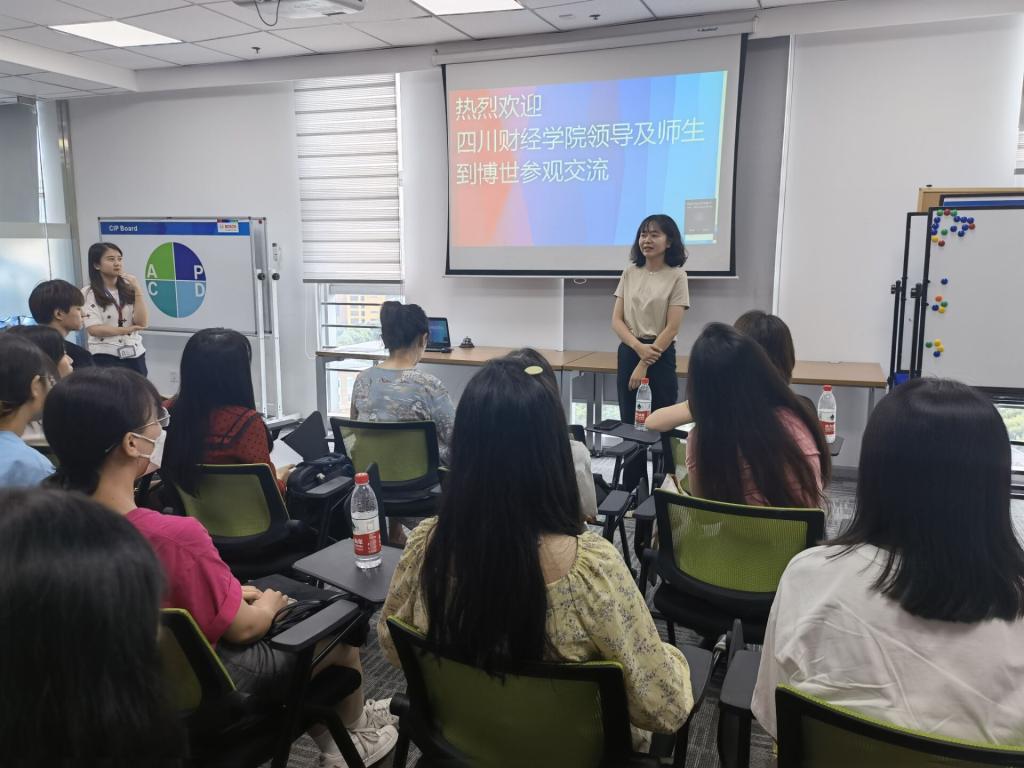 在参观过程中,刘经理对博世的整体结构与组织流程进行了详细讲解,介绍了博世公司的工作岗位分布与企业文化,让同学们对博世的相关工作内容有了基本的了解,相关的KPI绩效考核也为同学们提供了实习动力。