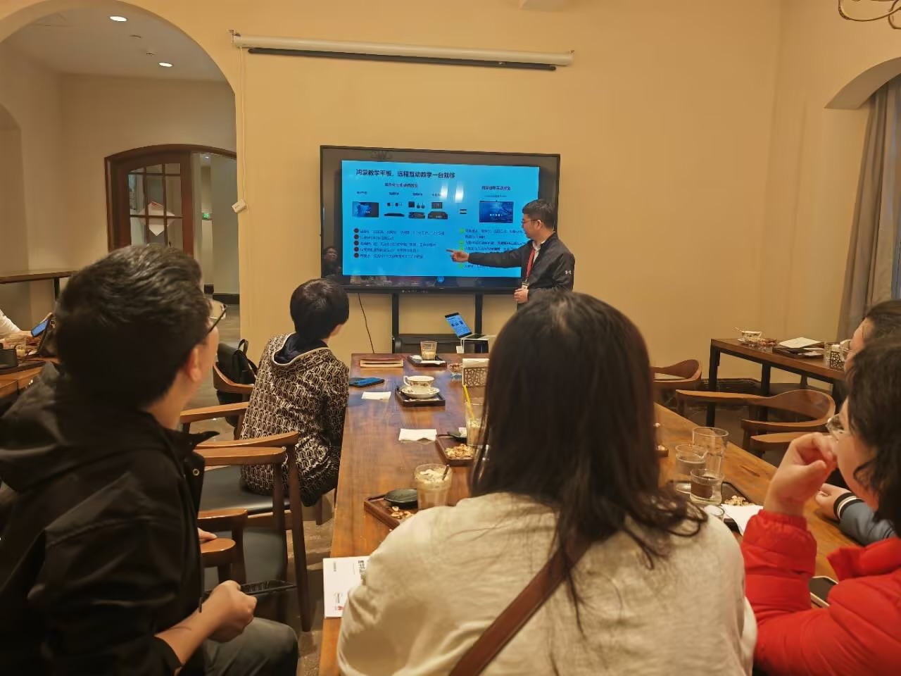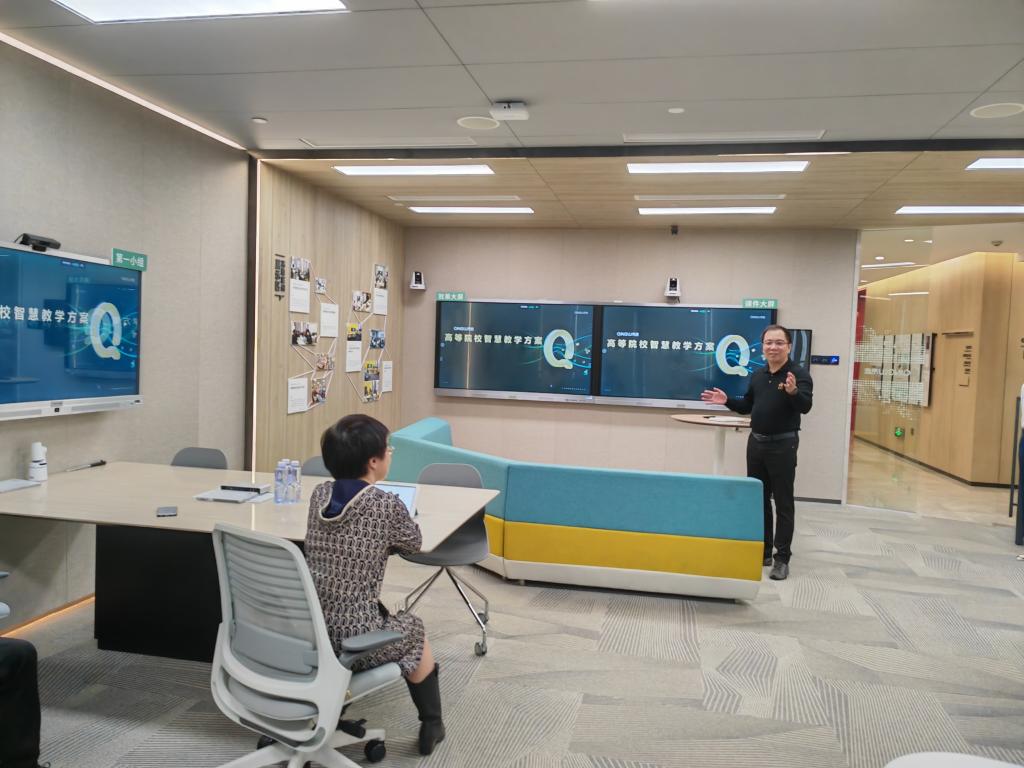 李代俊院长一行人前往广州科学城广州青鹿教育科技有限公司(以下简称“青鹿”)参观交流智慧教室建设,同时寻找未来进一步合作机会。首先,青鹿研究院院长廖力带领团队成员参观青鹿样板智慧教室。接着,廖院长现场向各位老师展示如何通过青鹿妙笔和青鹿智慧课堂互动软件,实现课前课中课后教学数据全流程打造。最后双方围绕如何构建软硬件一体化的智慧教学环境,打造以教学为核心的数字校园生态,以及如何以此为契机找到校企合作的机会,展开探讨与交流。