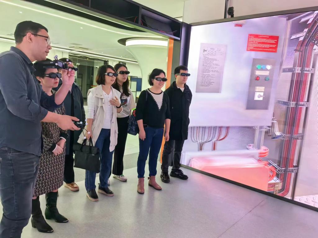 番职院虚仿基地工作人员全面讲解番职院虚拟仿真技术发展现状、虚拟仿真教学资源开发及成效评价、虚拟仿真实训管理平台建设、虚拟仿真教学资源共建共享路径等,现场展演“虚实课堂”,各位老师现场体验了VR技术与教育教学的融合创新。