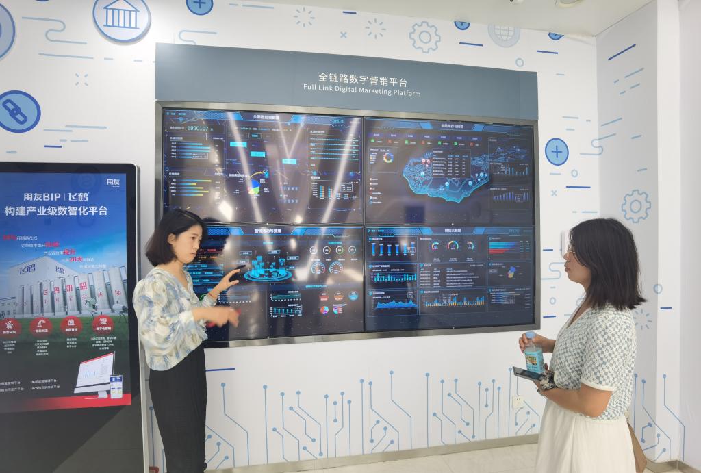 陈娟院长和唐雨薇老师参观了用友总部数智企业体验馆,通过实景化的交互体验方式,全面了解了数智企业营销、采购、生产、财务、人力、协同等核心业务场景,用友总部人员从制造、零售、金融、能源、教育及小微企业等行业数字化解决方案,解读了企业数智化的运营和管理模式。