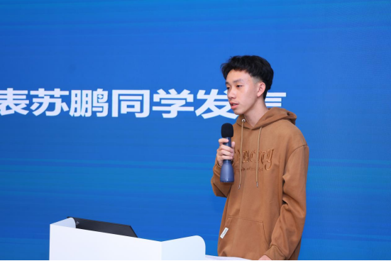 国际学生(老挝班)代表苏鹏同学发言,对全校师生表达了感谢,并表示会尽快融入新环境、好好学习。