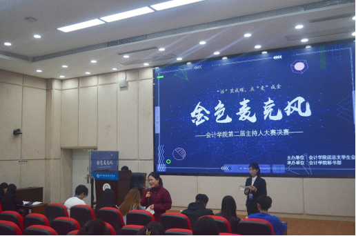 2021年10月27日下午,会计学院秘书部承办的第二届“金色麦克风”主持人大赛决赛于至诚楼212阶梯教室顺利举行。参加本次决赛的评委有会计学院江春燕老师,学院学生会各部门负责人。