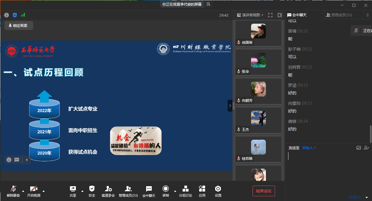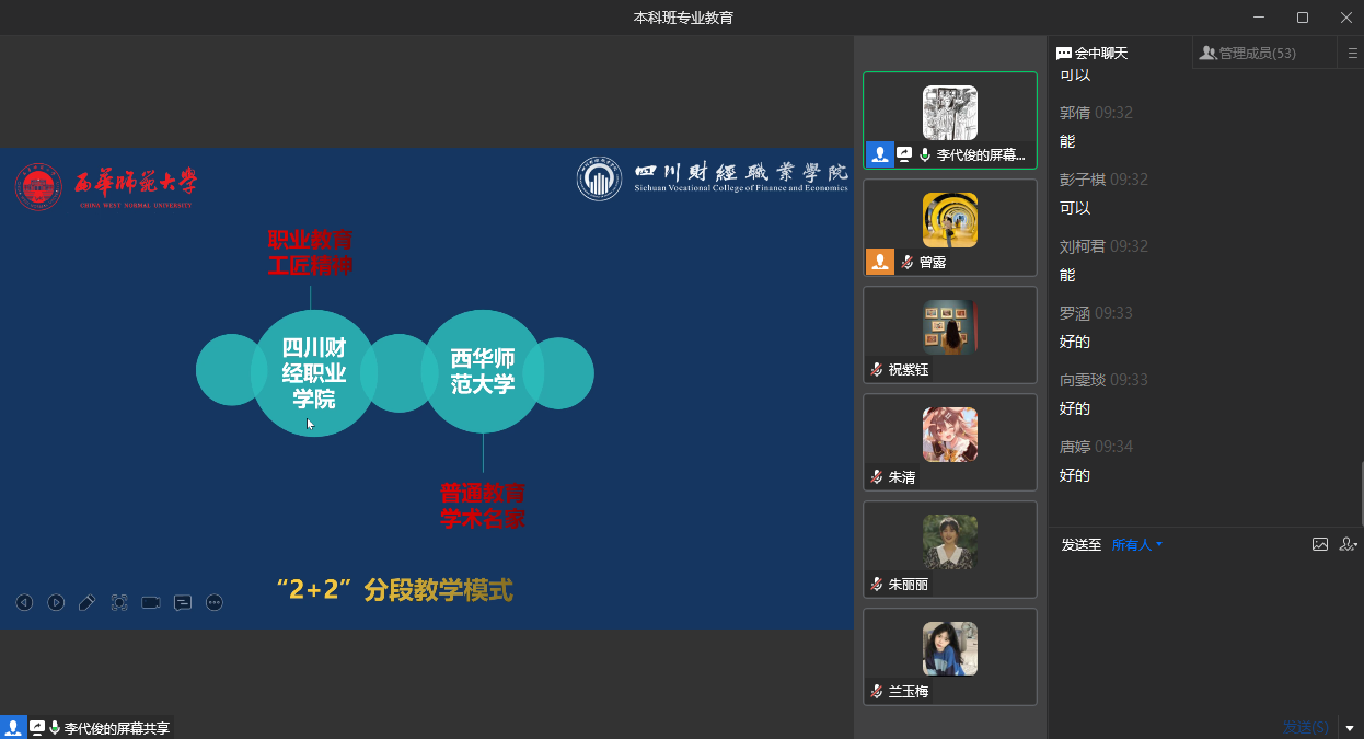 会议伊始,李代俊院长带领大家回顾了职教本科试点历程,用着朋友似的语言亲切地讲解着职教本科班的含义、教学、生活等等。令同学们印象最深的则是“学术+职业”双师型复合培养的教学方式,这是顺应国家对新型人才要求的重要举措,更是促进学生对信息化社会认知的重要途径。