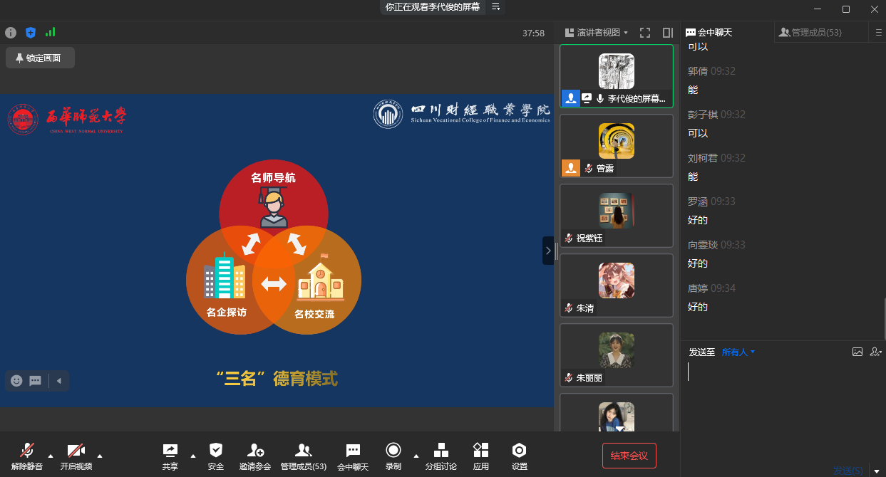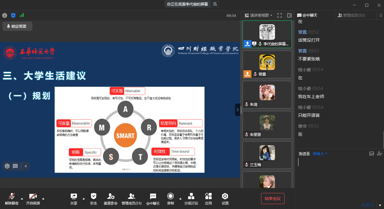 为加强22级本科班新生与班导师之间的交流,解决大学学习生涯的疑惑,培养新生积极进取的精神。2022级本科班于2022年9月9日举办线上班导师会议,学院党委书记张华、会计学院院长李代俊、2022级本科班辅导员曾露、2022级本科班全体同学出席会议。