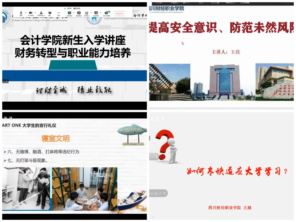 与以往的入学教育不同,会计学院组织了一场特别的入学教育主题,讲述会计学院自己的故事,“会”(kuai)意人生-师兄师姐“计”(寄)语新生。校友们从自己对专业的感知,对职业的感知和对人生的感悟三方面讲述,通过录播的形式和师弟师妹在云端相见,这些都让学生们很感兴趣,课堂上,一扫普通入学教育的枯燥。“校友的亲身经历作为现身说法能更好的引起共鸣,并更好地促进新生在入学之机更能找准定位,指定可行计划,勤奋努力,高质量的渡过大学时光。