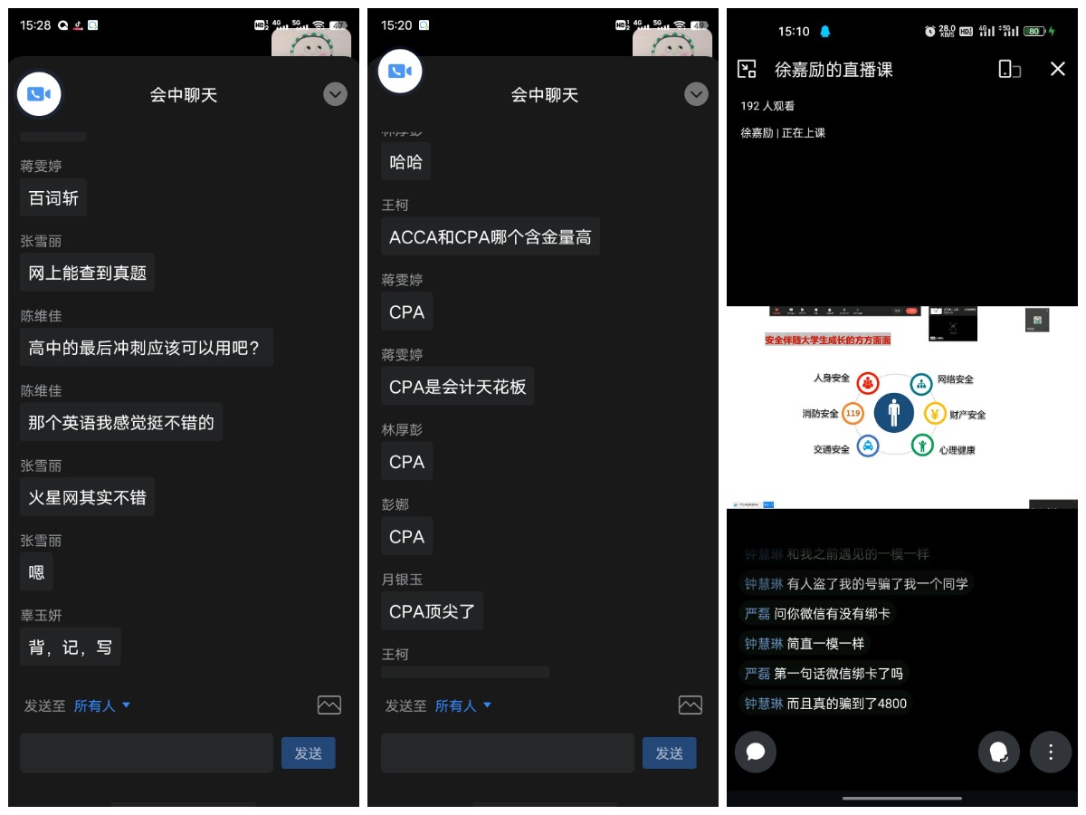 学院领导、班导师、辅导员利用企业微信直播大课堂、腾讯会议、QQ课堂、抖音直播等线上工具,分专业、分班级、分专题,以各式各样的线上网络课堂,别开生面的互动形式,如火如荼地开启师生破冰见面会,校规校纪教育、课堂成绩导学、心理健康教育、安全与防疫,资助政策宣讲等专题系列活动。
