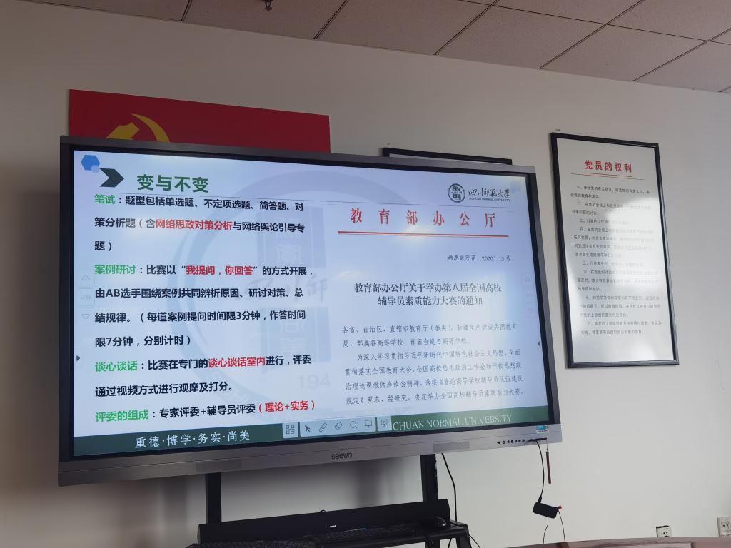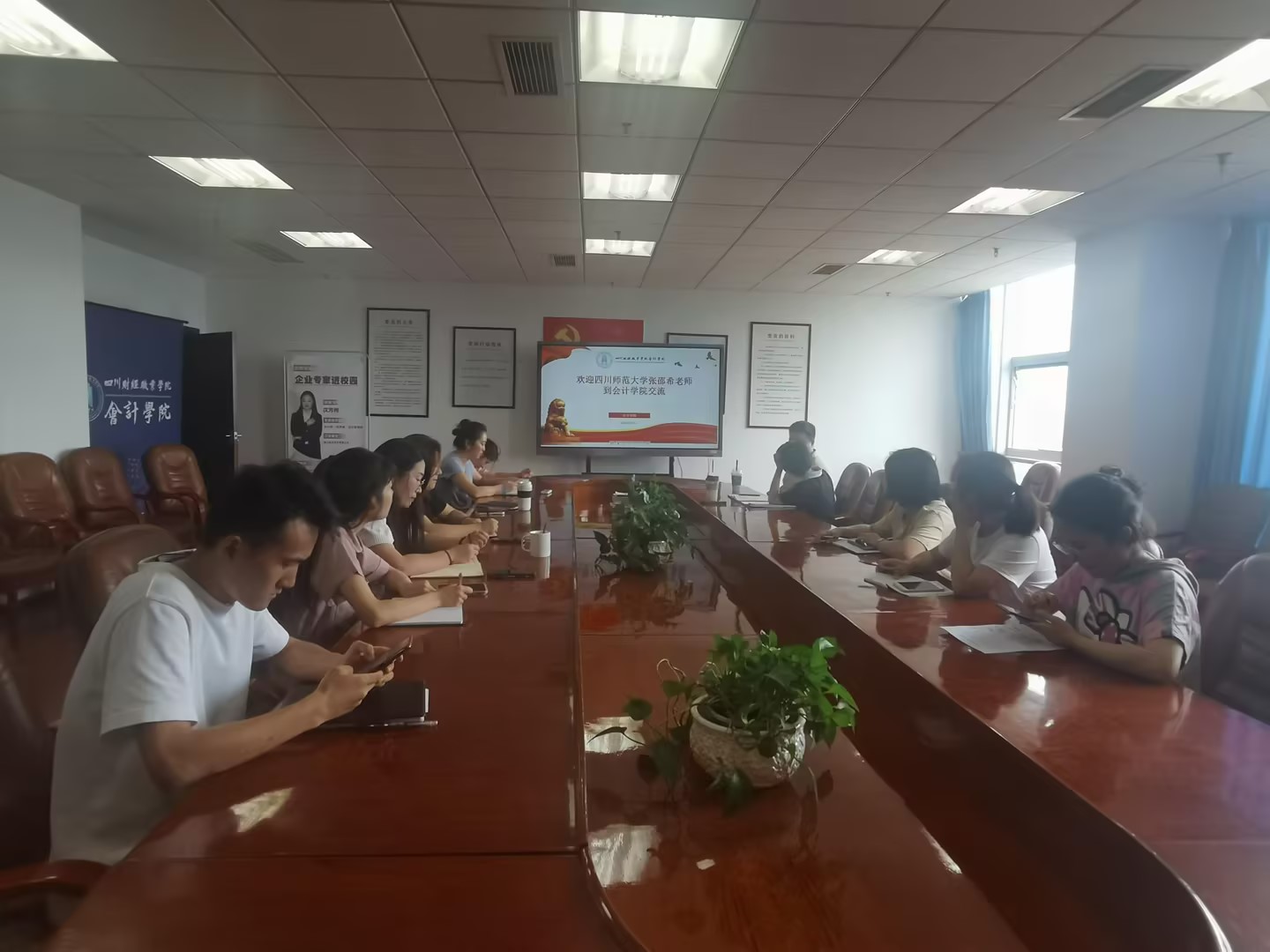 为加强辅导员队伍建设,6月21日下午,会计学院特邀四川省第八届辅导员素质能力大赛一等奖获得者、第四届四川省高校年度人物、四川师范大学辅导员张邵希老师对全体专职辅导员就素质能力大赛进行专题培训。会计学院党总支书记、院长李代俊,党总支副书记张玮,会计学院全体专职辅导员参加本次培训会。