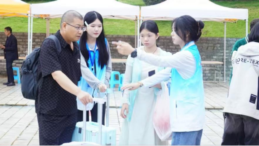 报到现场,工作人员与志愿者们热情满满,他们忙碌的身影成为校园里一道温暖的风景线。“同学,行李我来帮你提吧!”“同学,宿舍方向这边走,我送你过去!”“同学,不清楚报到流程的话,我慢慢跟你说!”一声声亲切的“同学”穿梭在人群中,像秋日里的暖阳,熨帖着新生初来乍到的拘谨。从引领新生一步步完成入学手续,到协助他们搬运行李,再到细致入微地解答每一个疑问,学院的每一分关怀与体贴都渗透在这些细微之处。“用最初的心,走最远的路。”志愿者们用实际行动诠释着奉献精神,让新生们在初入校园时便感受到家的温暖。