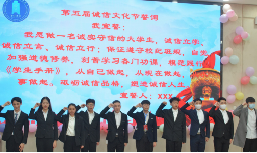 接下来由各学生代表签订本次仪式的诚信承诺书。每一个名字的签写,都代表着个人对诚信许下的庄重承诺。院级六大机构及各二级学院学生代表庄严宣誓,在日常生活中需要从自己做起,从现在做起,从小事做起,从而达到诚信立学、诚信立言、诚信立行的效果。