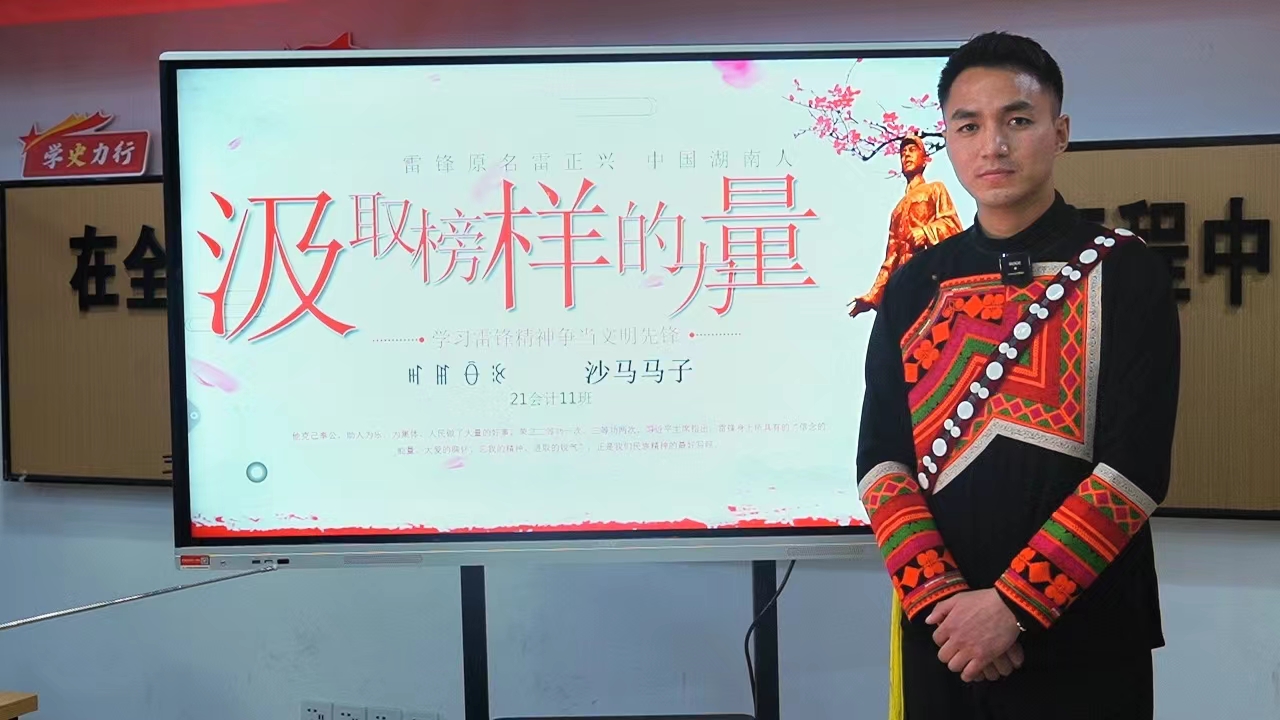 接下来是山行辅导员工作室阿别木呷老师分享,他提到读书不仅仅是读手中的书,更是广泛阅读,是精神和认知的增长。学习和读书的外延是非常广阔的。他还提到《雷锋日记》中提到的“青春”与“梦想”,希望同学能够不负春光通过读书成就自我。
