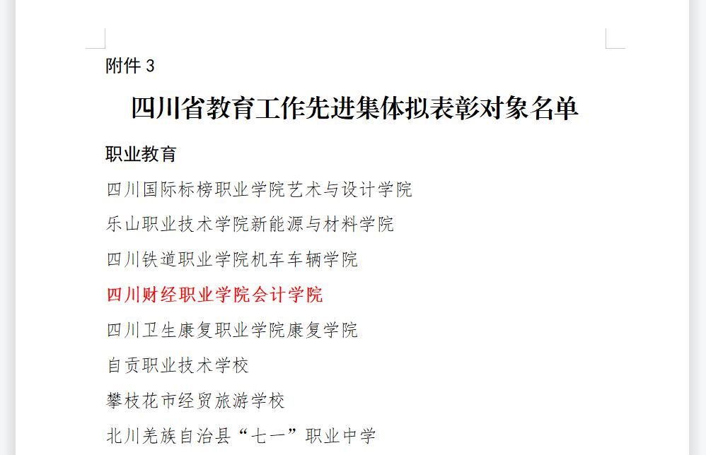 近日,四川省教育厅发布公示,拟表彰全省优秀教师、优秀教育工作者、教育工作先进集体,7790cnm必发集团会计学院喜获教育工作先进集体表彰。