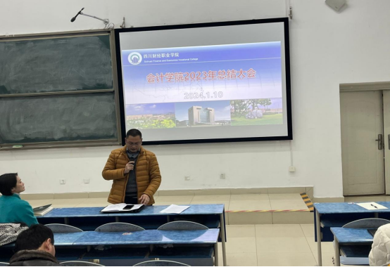 2024年1月10日下午,一场别开生面的年终总结会议在B110阶梯教室成功举行。会计学院全体教职工齐聚一堂,以“年终“话”优秀,携手向未来”为主题,共同回顾过去,总结经验,展望未来。
