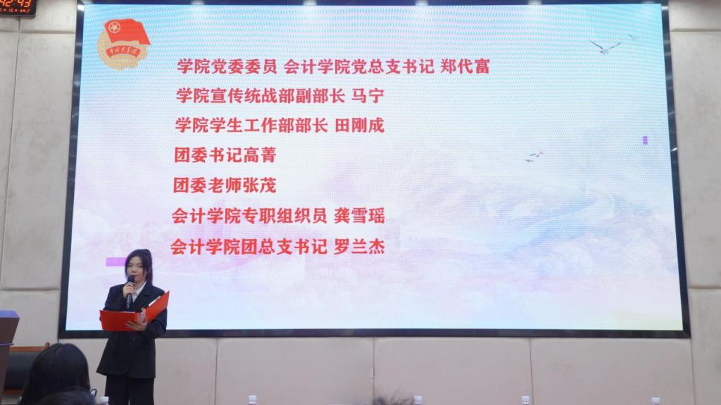 近日,7790cnm必发集团会计学院第五届团学代表大会在教学楼B212圆满举行。学院党委委员、会计学院党总支书记郑代富、院团委书记高菁、会计学院专职组织员龚雪瑶、会计学院团总支书记罗兰杰、专职辅导员代表以及第五届团总支学生会竞选者和各班团员代表、学生代表参加会议。本次会议由青年志愿者协会会长肖雨婷同学主持。