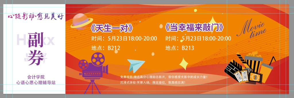 本次活动精选《天生一对》与《当幸福来敲门》两部影片,旨在通过电影艺术的情感共鸣,帮助学生释放压力、探索内心世界,提升情绪管理能力,培养积极向上的生活态度。