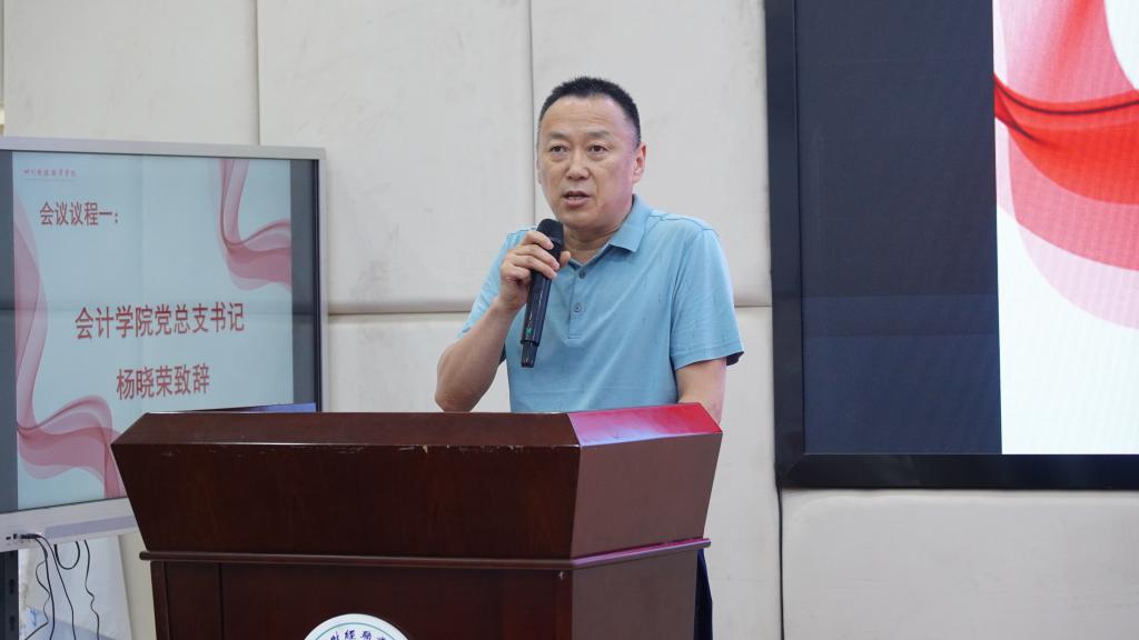 大会伊始,会计学院党总支书记杨晓荣为大会致辞。他充分肯定了协会过去一年在学术竞赛、志愿服务、会员培养等方面的突出表现,强调协会作为学生成长的重要平台,应继续秉持“立诚弘毅”的精神,深化专业实践与创新探索,鼓励全体干事以更饱满的热情投身未来工作,为学院学科建设和学生发展贡献力量。