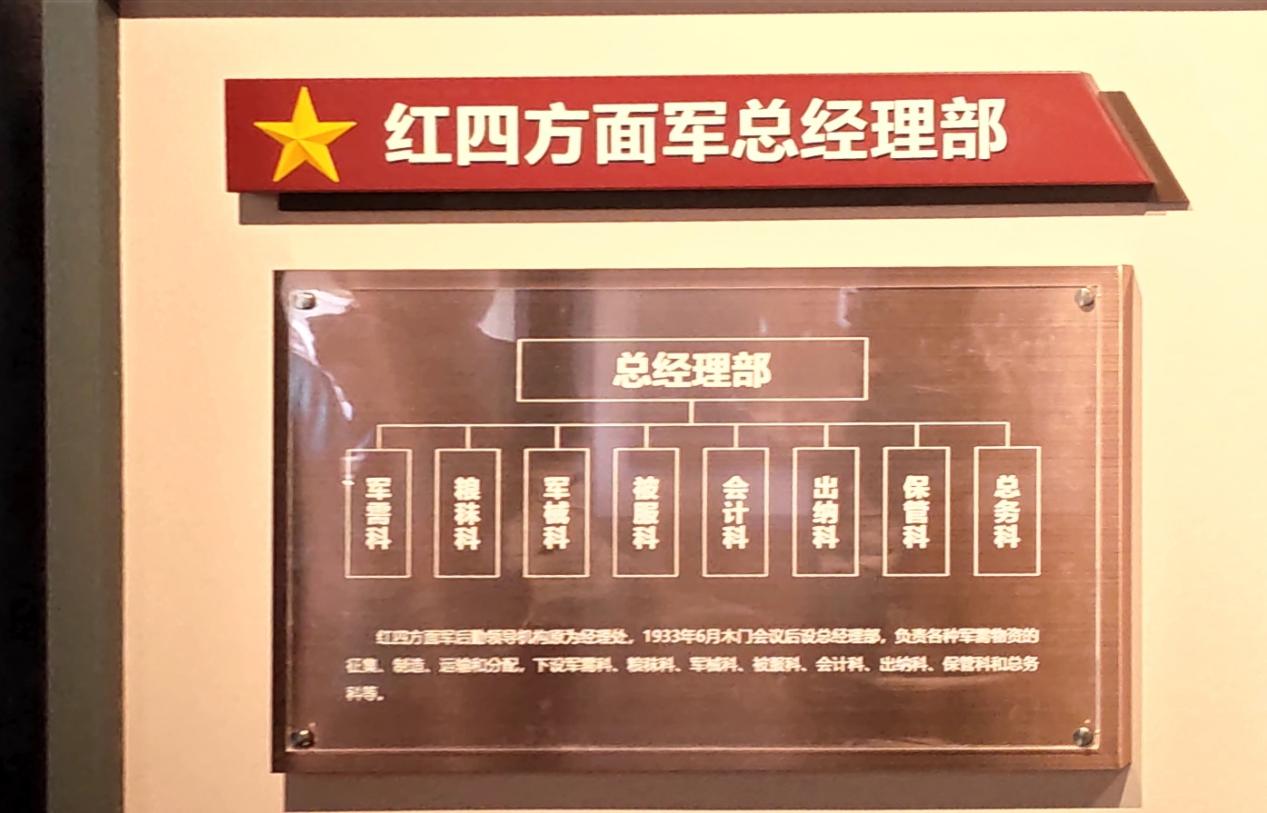 下午,团队来到红四方面军总指挥部旧址纪念馆。这座纪念馆始建于1982年,巧妙依托明清风格的通江文庙和学宫古建筑群而建,古朴的飞檐斗拱与朱红廊柱相映成趣,现已成为全国爱国主义教育示范基地、全国重点文物保护单位。步入馆内,历史的厚重感扑面而来。展陈以时间为脉络,通过泛黄的作战地图、珍贵的会议记录、磨损的通信设备等文物,系统呈现红四方面军从黄麻、商南、六霍起义建军,到艰苦卓绝的反“围剿”斗争,再到创建川陕苏区的辉煌历程。其中,红四方面军总经理部的机构设置图尤为醒目。该部于 1933 年 6 月木门会议后由经理处改组而成,下设军需、粮秣、军械、被服、会计、保管等多个科室,全面负责军需物资的征集、制造、运输和分配,其严密的分工与高效的运作,成为红色财经在后勤保障领域系统化运作的生动见证。此外,根据地群众和妇女独立团的故事,生动展现了不同群体为革命事业作出的独特贡献。
