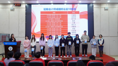 协会还对在2025年度初级会计职称考试中位列前十的会员进行表彰颁奖。会计学院副院长胡小凤为获奖会员颁奖,并鼓励全体新会员以优秀者为榜样,坚守日复一日的努力与坚持。
