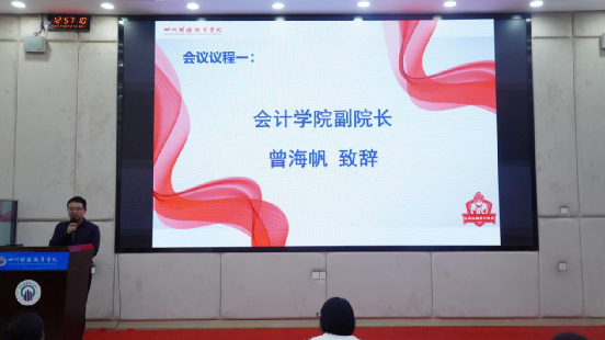 会议伊始,会计学院副院长曾海帆老师发表致辞。他肯定了协会过往取得的优异成绩,表示学院也将继续助力协会各类活动高效开展,还从发展方向层面提出指导意见,为协会未来规划锚定目标,曾海帆院长发言赢得现场阵阵热烈掌声。