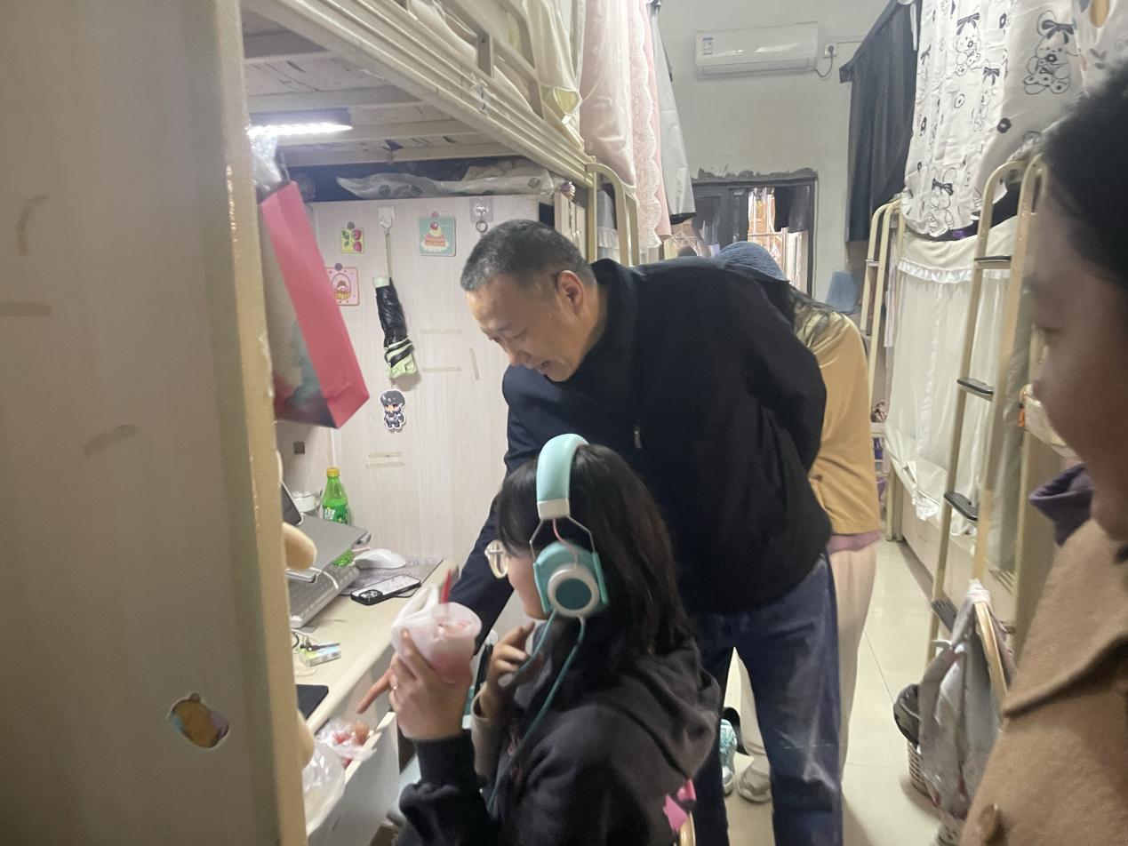 杨晓荣书记提前统筹,将辅导员分为三个检查小组,明确各组职责分工与检查重点。排查中,各组深入寝室查两项重点:一是卫生状况,看通风、物品摆放及清洁死角,引导学生养成良好习惯;二是安全隐患,核查违规大功率电器、私拉电线等问题,当场指导整改。