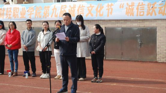 活动在欢快的掌声中拉开帷幕。杨晓荣书记在致辞时指出诚信文化与体育精神的融合意义,强调财院精神与运动结合是抽象理念转换成具象行动的生动实践。学生代表钟志刚分享对诚信立身、运动强国的理解,号召同学们暂别书本、勇敢参与,在奔跑中释放青春热血、践行诚信理念。