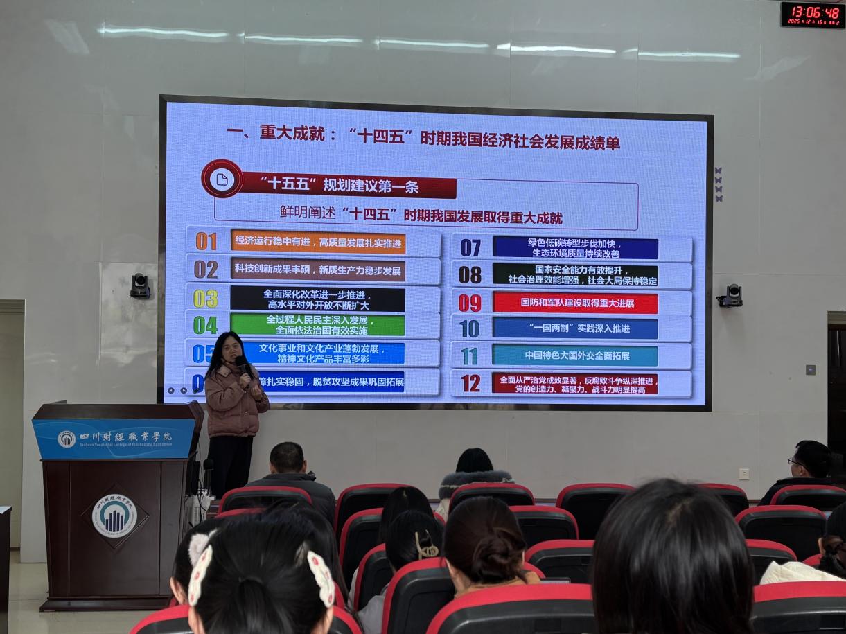 会上,马克思主义学院教师汪丽娟就“党的二十届四中全会精神”进行了专题宣讲。她围绕本次全会召开的背景、核心议题与重大部署进行解读,结合职业教育发展实际,阐释了全会精神对高校人才培养、学科建设的指导意义,引导教职工将全会精神融入教育教学全过程。