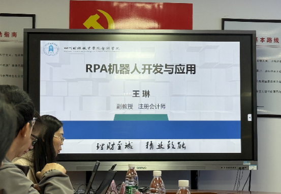 王琳和何双利围绕RPA机器人开发与应用,介绍了行政事业单位财务自动化场景及以赛促学的人才培养成果,展示了数智化转型背景下的教学创新。