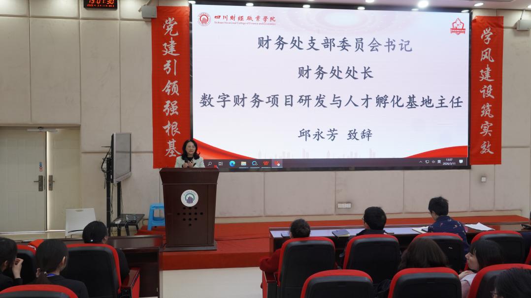 在领导致辞环节,财务处处长邱永芳在开幕致辞中,结合数字财务发展趋势与行业人才需求,深入阐释了基地的建设初心、培养目标与发展规划,寄语学生珍惜平台、深耕专业、锤炼能力,努力成长为适应时代需求的高素质财务人才。