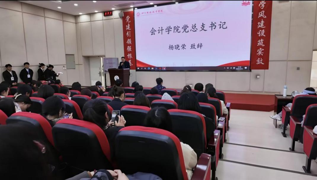 宣讲会在主持人曹月圆同学热情洋溢的开场中拉开帷幕。党委委员、学院副院长李代俊,财务处处长邱永芳,会计学院党总支书记杨晓荣,财务处副处长黄媛,会计学院副院长曾海帆等领导嘉宾齐聚一堂,共同见证这一重要时刻。