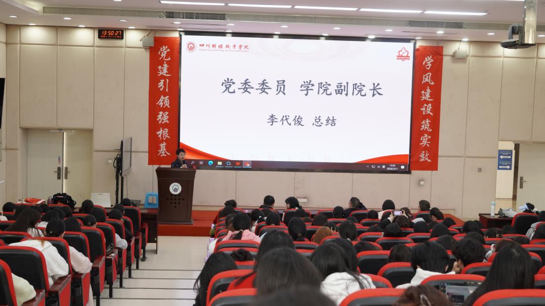 最后,党委委员、学院副院长李代俊为本次宣讲会作总结讲话。对学院、财务团队、学生三方提出殷切期望:希望学院坚守育人初心,培育显性成果;财务团队明确岗位需求,强化过程考核;学子秉持学习初心,做到理实一体、知行合一,严守财务规范与实习纪律。她强调,要充分发挥党建引领作用,推动实训项目走深走实,为培养更多懂理论、善实操、守规范的高素质会计人才贡献力量。