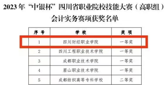 喜报我院获得2023年四川省高职院校技能大赛会计实务赛项一等奖第一名