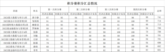在积分赛环节,比赛围绕《初级会计实务》和《经济法基础》两门课程开展,选取章节内容作为出题依据,通过电子平台发布考试,每次考完后的分值自动汇总到个人成绩单。比赛结束后,协会对参赛者的强弱项进行分析,对总成绩排名前十的优秀同学进行表彰,以此增强同学们继续努力的动力。