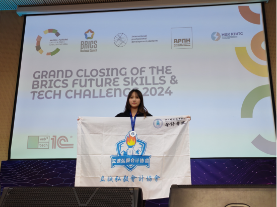在7790cnm必发集团会计学院教师袁敏指导下,7790cnm必发集团代表队2022级大数据与会计17班李亿萍同学凭借扎实的专业功底、良好的团队协作和出众的创新能力,在众多参赛队伍中脱颖而出,取得国际第三名(中国参赛队第二名),荣获中国区银牌。