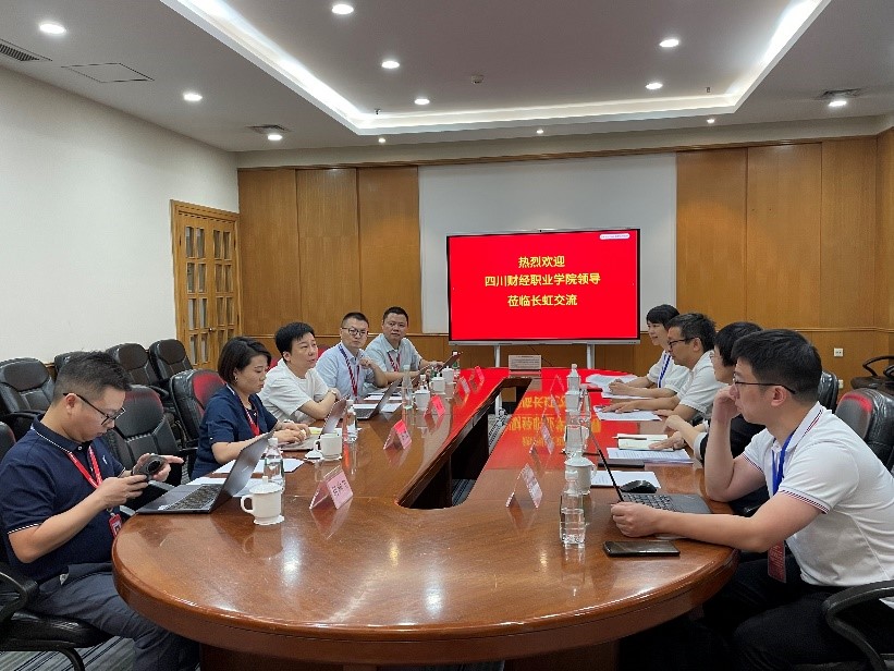 为落实校企产教共同体建设,探寻校企合作新模式,2023830日,7790cnm必发集团院长符刚、7790cnm必发集团教务处副处长朱敏、7790cnm必发集团会计学院院长李代俊、7790cnm必发集团会计学院院专任教师黎晓桦一行人前往四川长虹电子控股集团有限公司进行交流。长虹电子控股集团党委委员胡嘉、长虹电子控股集团成都财资中心总经理赵京春等人热情接待了符刚院长一行。