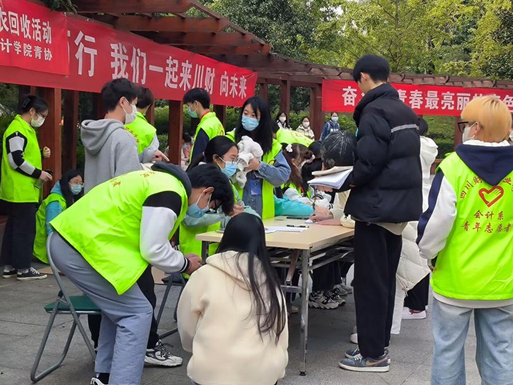 “种下一棵树,收获一片绿荫;献出一份爱心,托起一片希望。”为传播爱心文化,践行环保理念,推动绿色经济发展,营造和谐节约校园氛围,提高学生社会责任感,2022年11月15日,会计学院青年志愿者协会以“天涯共明月,以衣传我心”为主题举办旧衣捐赠活动,号召同学们以小衣物传温暖,以大爱心创和谐,伸出援手,捐助衣物,用心点燃希望,用爱撒播人间。本次活动,得到了成都“同心互惠”慈善机构的大力支持。