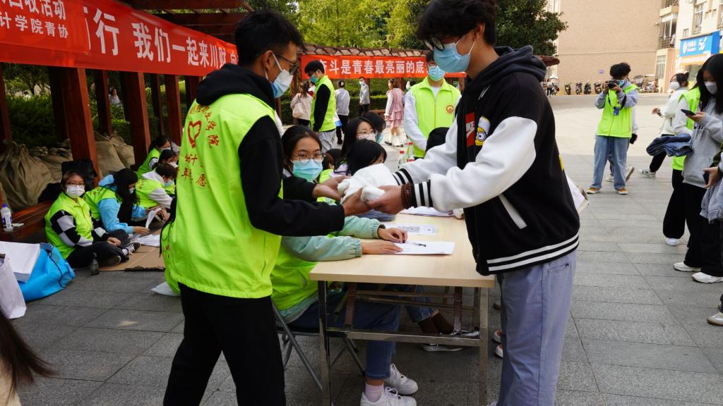 能力不分大小,捐赠不分多少,善举不分前后,活动一经开展,同学们纷纷响应,踊跃参与旧衣捐赠活动,以实际行动表达自己的爱心,青年志愿者对同学们捐赠的每一件衣物进行检查、消毒、整理、打包,并登记捐赠同学的信息,确保把每一位同学的爱心都记录下来。同学们捐衣捐袜,集腋成裘,聚沙成塔,最后共募集旧衣1430件。成都“同心互惠”慈善机构通过“旧物改造”“清洗消毒”“公益活动” “废品销售”四种方式将所募捐的衣物变废为宝进行“再捐赠”,让贫困山区的孩子们的冬天不再寒冷让同学们用真诚编织和谐有爱的家园。