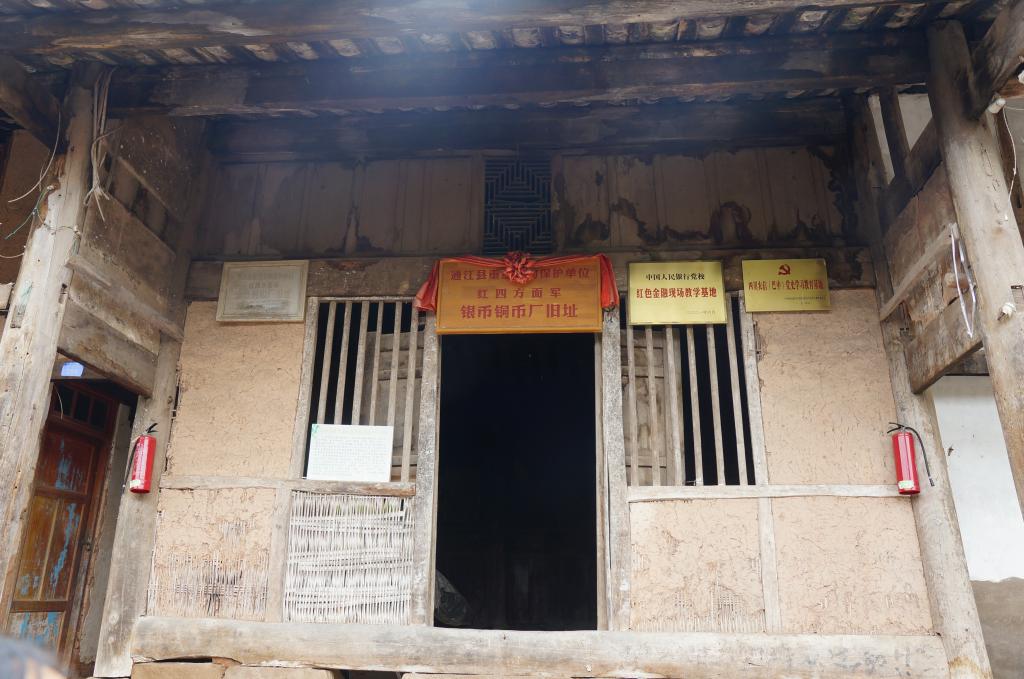 实践团队前往东河镇探寻工农红军造币厂遗迹,走访了广元市旺苍县中国红军城以及印币厂,在红军城大门前,“赤化全球”四字与墙壁上“斧头劈开新世界,镰刀割断旧乾坤”相呼应。在寻找东河造币厂途中,从村口老人口中得知当年造币厂厂房、员工宿舍位置,从村民的叙述中了解到因1993年“三线”调整,搬迁去了成都市温江区。最后,实践团队前往了黄洋镇,跟随当地政府工作人员,参观设在黄洋烂槽沟的红军造币厂遗址,1935年4月,红四方面军造币厂随主力撤离旺苍,出发长征,造币厂机械设备因不便转移,只好将大部分机器沉到东河的亭子沱和马家渡深潭中。
