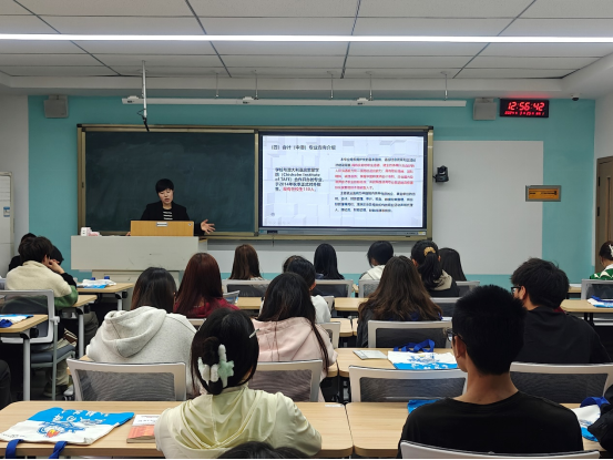 接下来,由立诚弘毅会计协会指导老师党爱为转专业的同学介绍会计学院的整体情况。党爱老师首先从会计学院的专业团队、所拥有的专业、曾获荣誉三方面介绍,让同学们充分了解学院师资力量、各个专业的特色及优势。接着向大家展示了本协会的建设、开展的活动、曾获荣誉等,鼓动大家积极参与各种活动,锻炼自我,提升自我。最后,老师鼓励新同学主动融入新的集体,与同学们建立紧密的联系,和结对的同学共同学习、共同进步、共同成长。