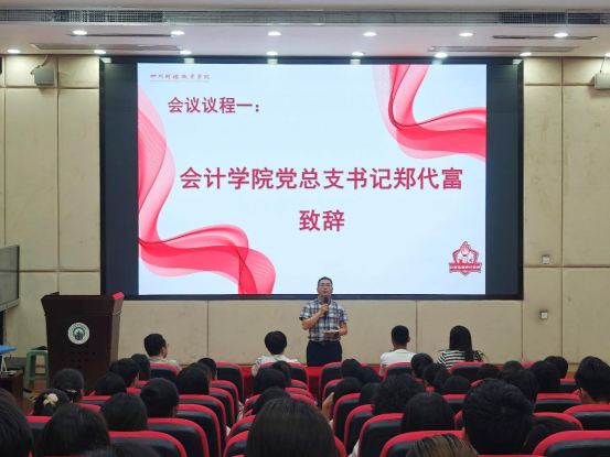 大会伊始,会计学院党总支书记郑代富致辞。郑代富书记首先对协会的组织分工、研学活动、专业领域活动等给予了充分肯定,并指出应当继续保持专业性社团的专业性与人文性协同发展,创新发展。其中,着重指出协会考证组本期开展的专业活动取得的成效,称赞协会在团结、帮助同学等方面起到了很好的作用。最后,郑代富书记殷切期望协会能薪火相传,生生不息,每一届的协会组织者要传承学习,创新发展,努力将协会打造成专业性的学习交流平台。