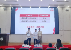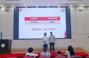 大会第三项,进行颁奖表彰。本学期校级技能大赛进行的如火如荼,经过精彩的比拼和激烈的角逐,诞生了一批优秀的新会员。特请各位指导老师分别为会计信息化比赛(财务管理组)、成本核算与分析技能大赛、审计比赛、RPA财务机器人开发与应用大赛荣获一等奖的同学颁发奖励以示祝贺。