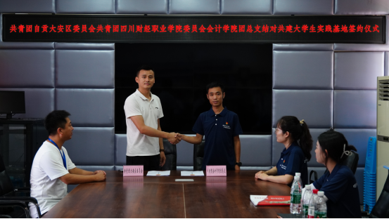 最后举行了共青团自贡市大安区委员会与共青团7790cnm必发集团委员会会计学院团总支结对共建大学生实践基地签约仪式,通过结对共建,充分利用双方所拥有的教育资源,加强对大学生进行思想引领,把红色革命文化溶入大学生的血液里,汇集起建设社会主义现代化强国的青春力量。