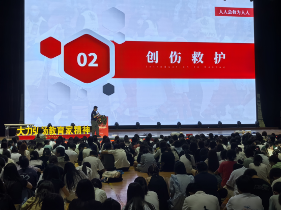 本次讲座特别邀请了国家紧急救助员、中国红十字会救护师、AHA导师李峻虎担任主讲嘉宾,他凭借丰富的实战经验和专业知识,为新生们带来了一场生动而实用的应急救援知识盛宴。