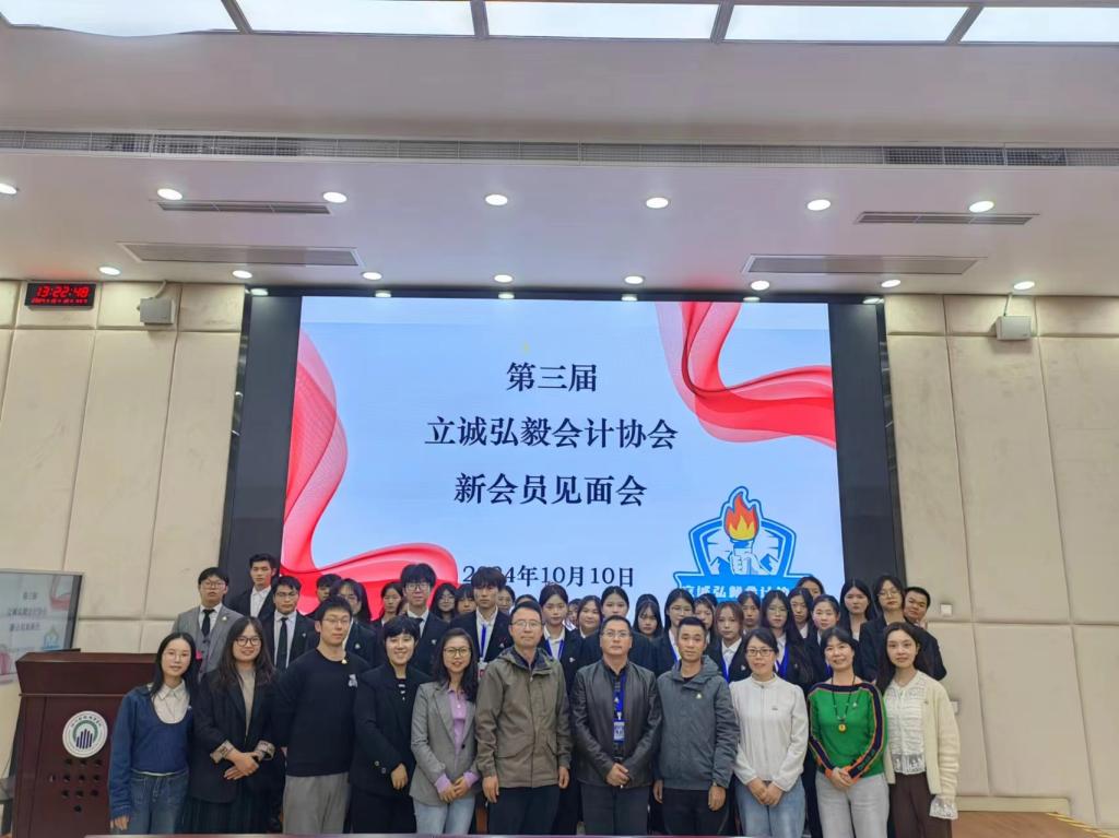 桂香飘然间,故里逢秋时。为给协会注入新鲜血液,吸纳更多优秀人才,更好地奠定协会基础,促进协会的发展。2024年10月10日下午13时,第三届立诚弘毅会计协会新会员见面会在至诚楼B213隆重举行,出席见面会的有会计学院党总支书记郑代富,会计学院副院长曾海帆,会计学院团总支书记罗兰杰以及协会的指导老师们,还有第三届全体新会员和老挝留学生班会员。见面会由立诚弘毅会计协会会长何涛主持。